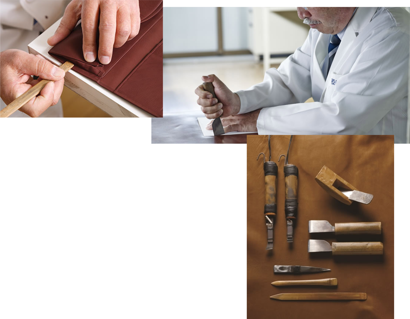 そして、工房ではこうした技術技法を50年近いキャリアを持つ一級職人が、次世代を担う若い職人達に日々伝えながら、現代のユーザーに通じるベーシックでエレガンスな革製品を作っています。