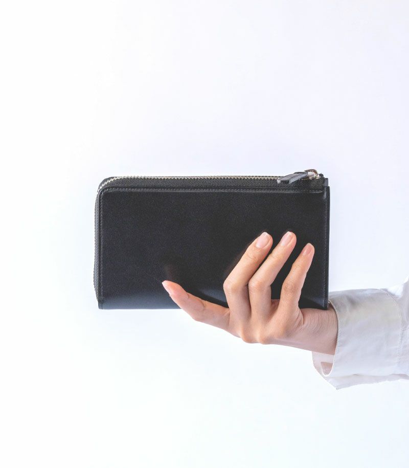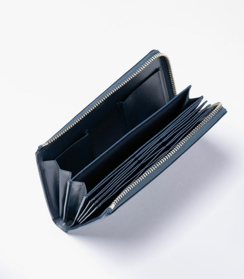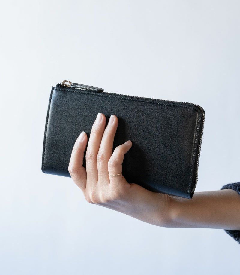 コンパクトで大容量、そして使いやすいを実現した美しいバランス。お札30枚、硬貨30枚、カード20枚が余裕を持って収納可能。