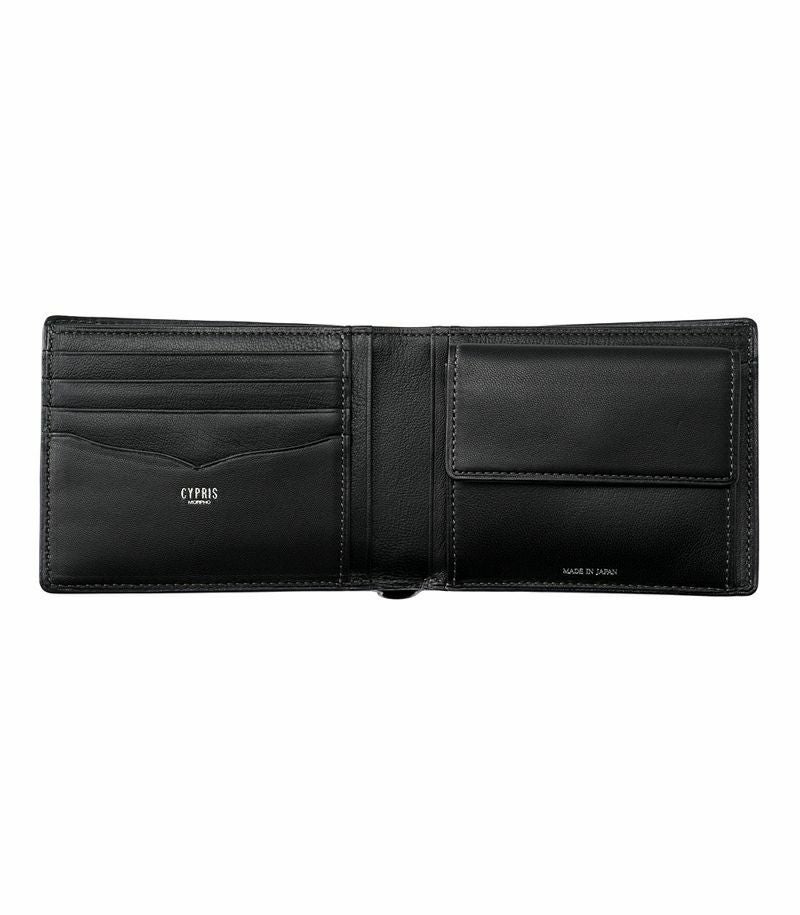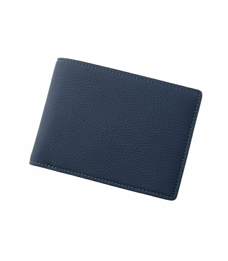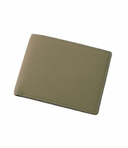 スナップボタンタイプの小銭入れが付いた二つ折りの財布です。内側には、クレジットカードや交通系ICカード類が収納可能なカード入れ×4とポケット×5が付いております。