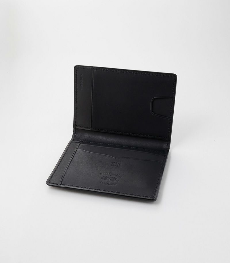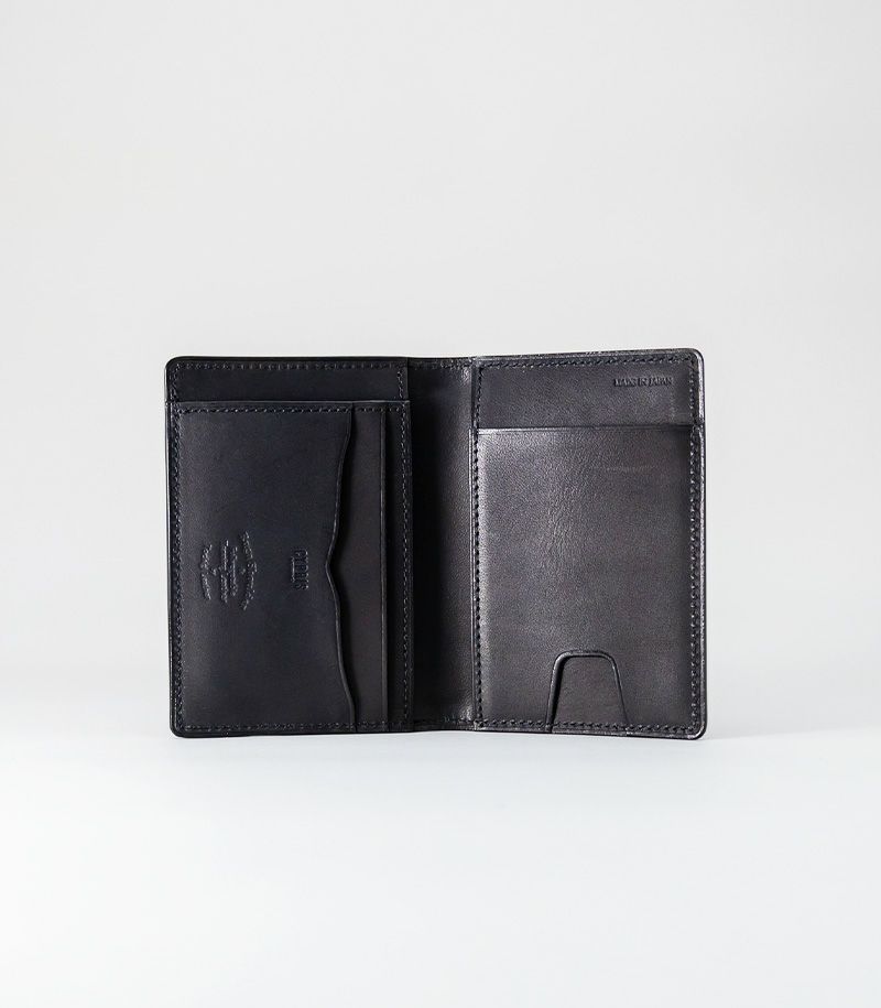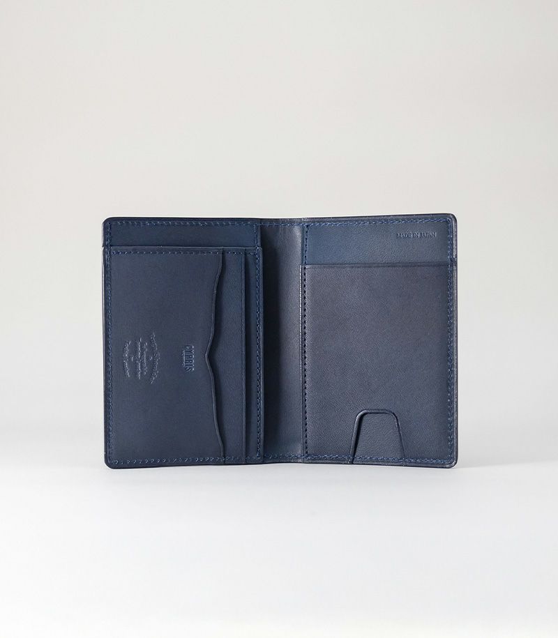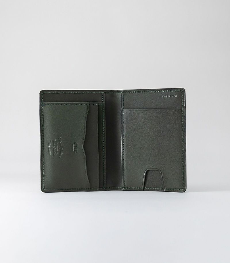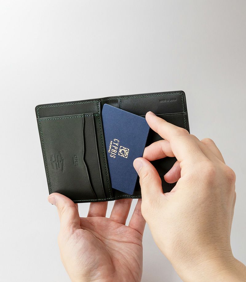 内側と表側の2面に入れることができる二つ折りのパスケースです。他にも、内側にはポケット×3とカード入れ×2、表側にはポケット×1が付いております。