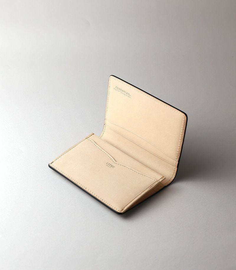 上部が広がり、底に向かって細くなる構造のササマチ名刺入れです。膨らみにくいため、薄型でスマートな印象です。
