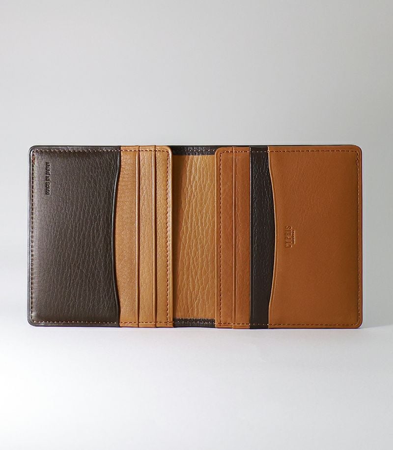 カード入れが6つと、札入れが1つついたコンパクトな財布。ベロで両側からお札を挟み込む仕様で、コンパクトかつ薄くスマートな財布を実現しました。