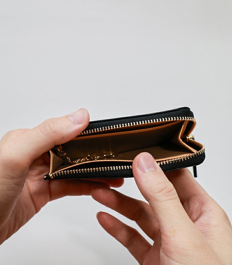 内側には着脱可能なキーホルダーと、カード入れが付いており、外側にはクレジットカードやポイントカード類が収納可能なカード入れ×3とポケットが付いております。ミニ財布、キーケース、カードケースとしてなど使い方は様々です。
