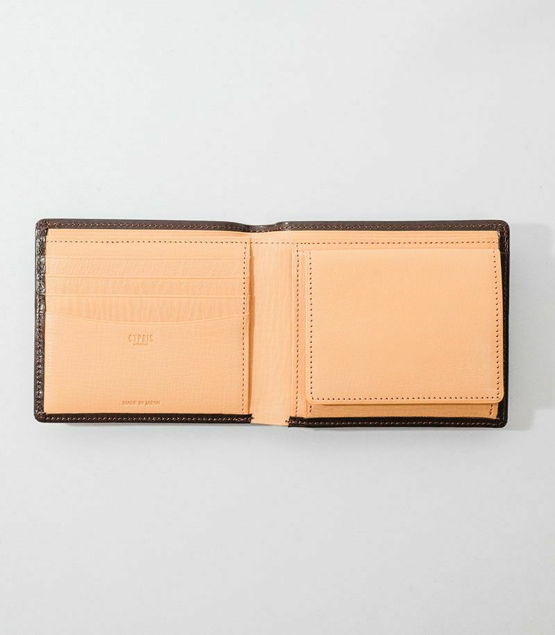 キメが細かく繊維の締まった原皮を使用し、厚みを活かしたハリ感や、アンティーク加工による独特な色の濃淡を楽しめる、キプリスオリジナルの上質な国産レザー「シラサギレザー」を使用。