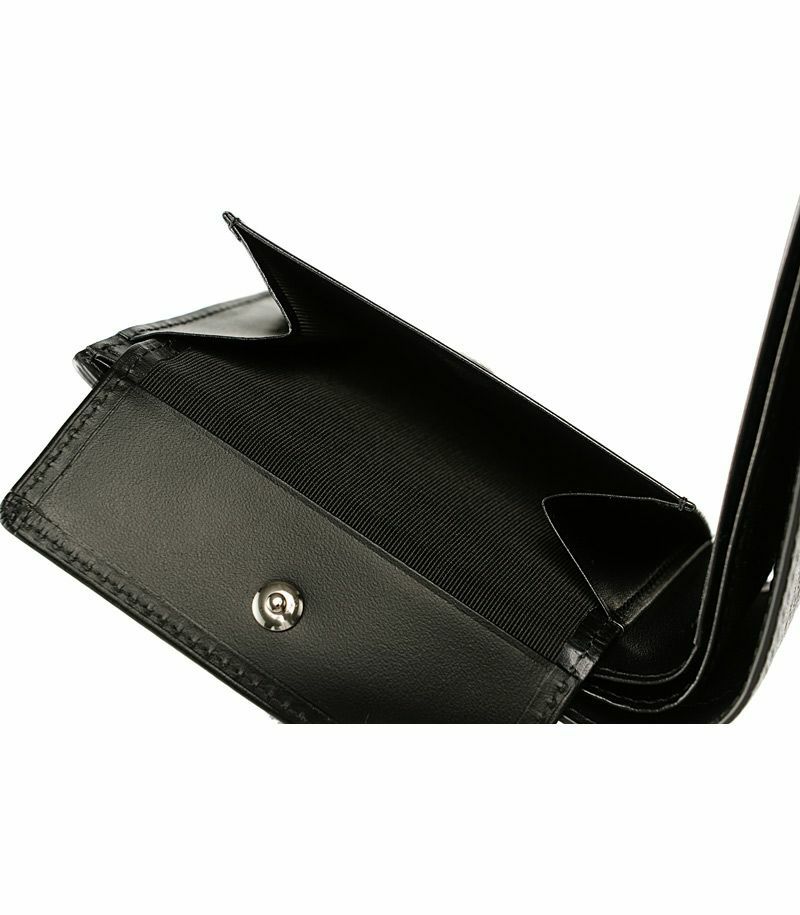 スナップボタンタイプの小銭入れが付いた二つ折りの財布です。内側には、クレジットカードや交通系ICカード類が収納可能なカード入れ×4とポケット×3が付いております。