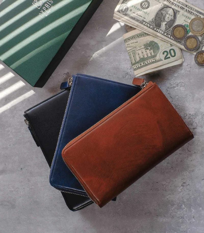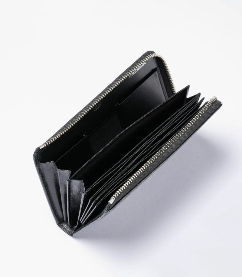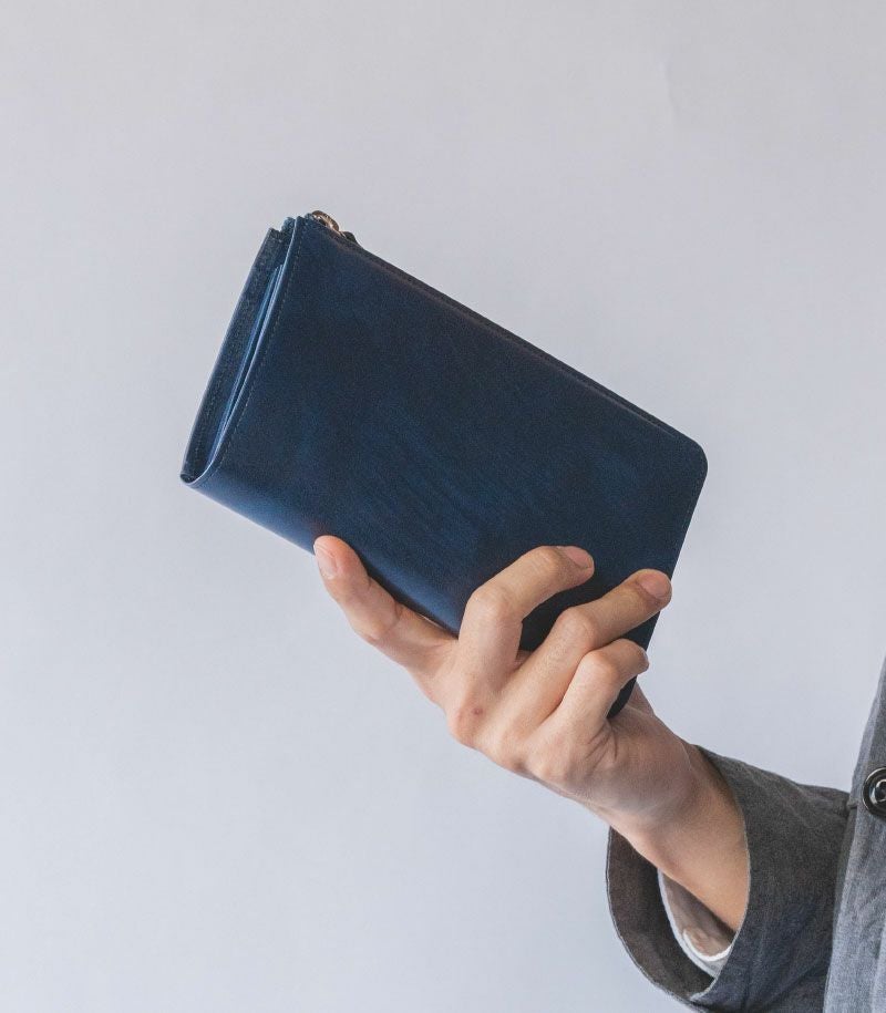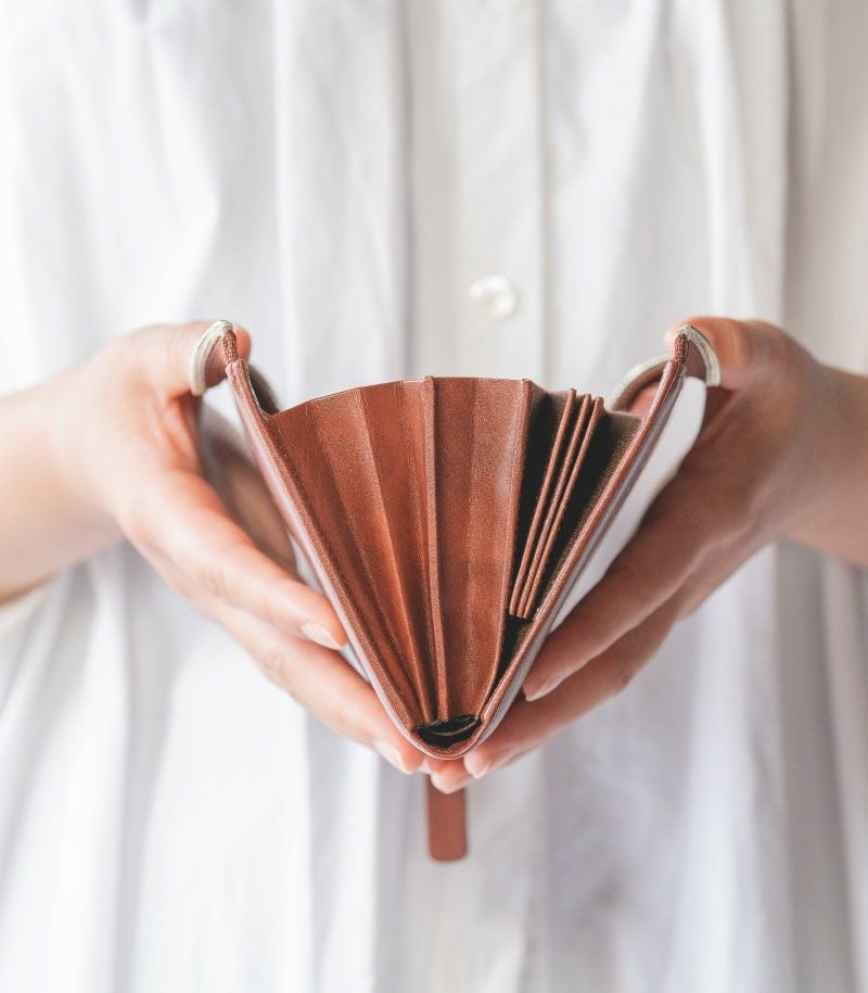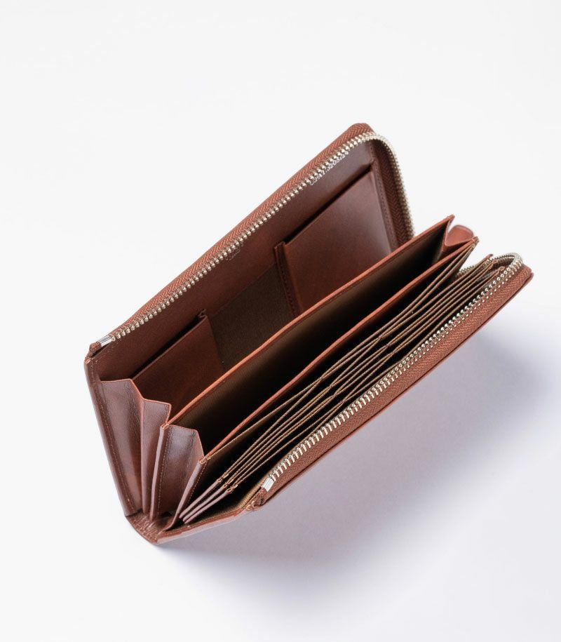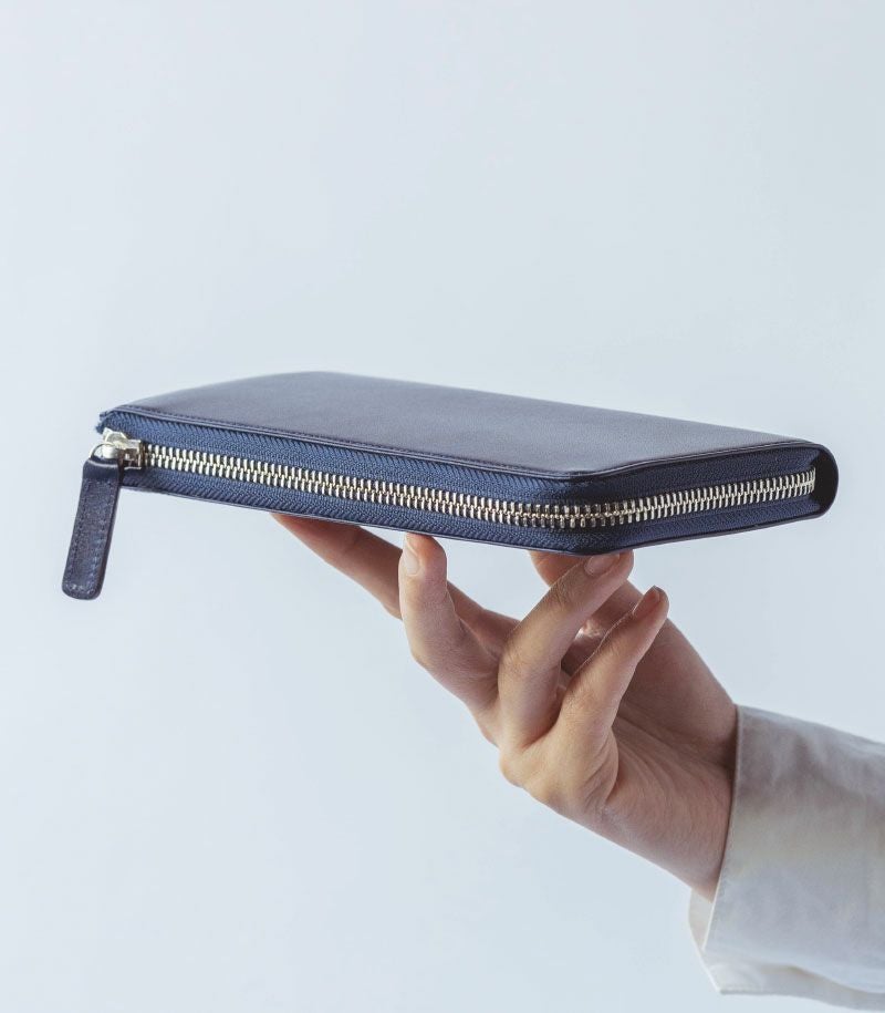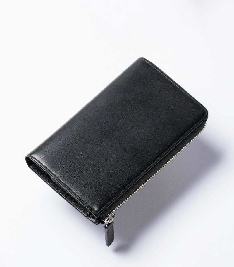 コンパクトで大容量、そして使いやすいを実現した美しいバランス。お札30枚、硬貨30枚、カード20枚が余裕を持って収納可能。