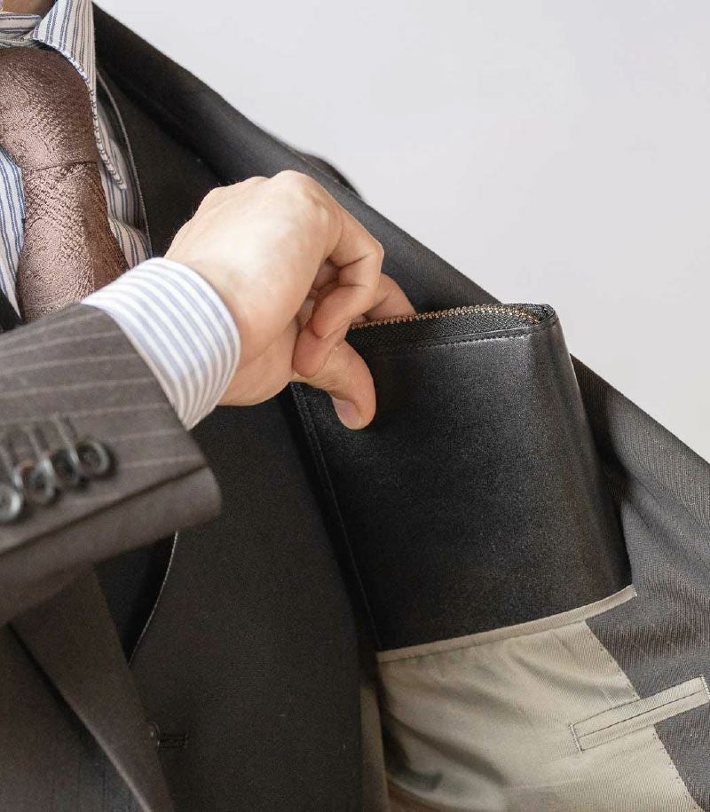 ハニーセル®構造とアイランドポケットを組み合わせ、コンパクトながら大容量を実現。丁寧に仕上げた外観はピンと張り、上品でスーツに合う仕立てに。最大容量でも美しさを保ち、財布へのダメージが少ない構造ゆえ、より永くお使いいただけます。