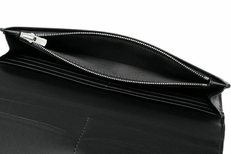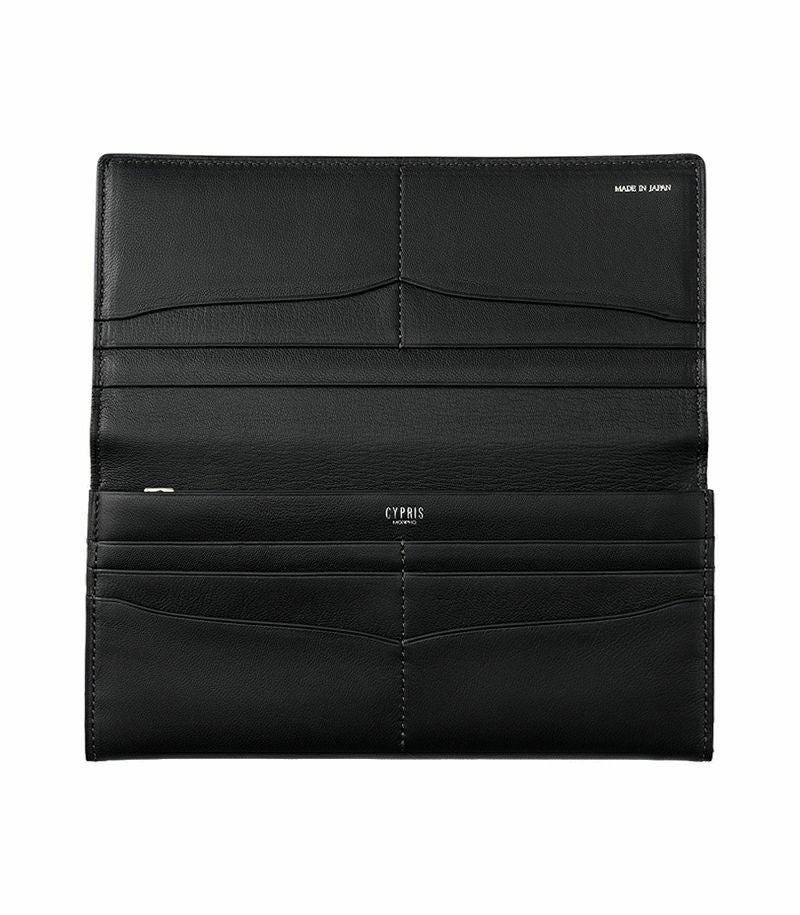 上部が広がり、底に向かって細くなる構造のため膨らみにくいササマチ財布。かぶせ蓋になっており、スッキリとした印象です。 ファスナータイプの小銭入れと、内側にクレジットカードや交通系ICカード類が収納可能なカード入れ×16、ポケット×3が付いており、収納力もあります。