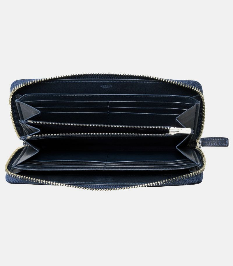 ラウンドファスナータイプのため、しっかりと留まり、中身が飛び出ることがありません。内側には、ファスナータイプの小銭入れとクレジットカードやポイントカード類が収納可能なカード入れ×12が付いています。