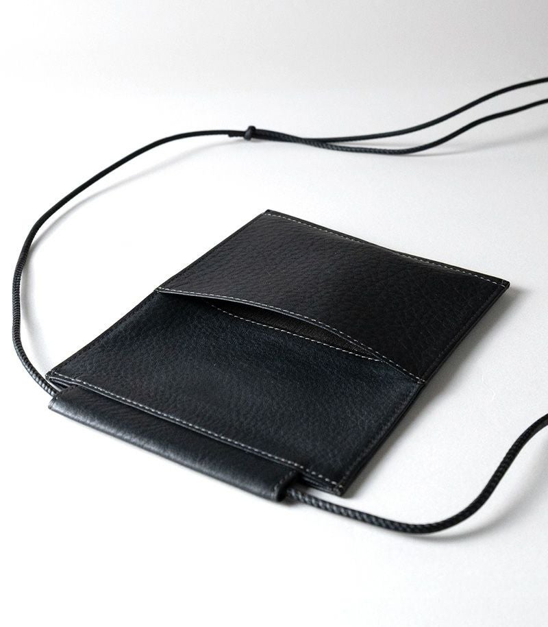 カジュアルな装いにも、きれいめな着こなしにも似合う、オールレザー製のマルチホルダー