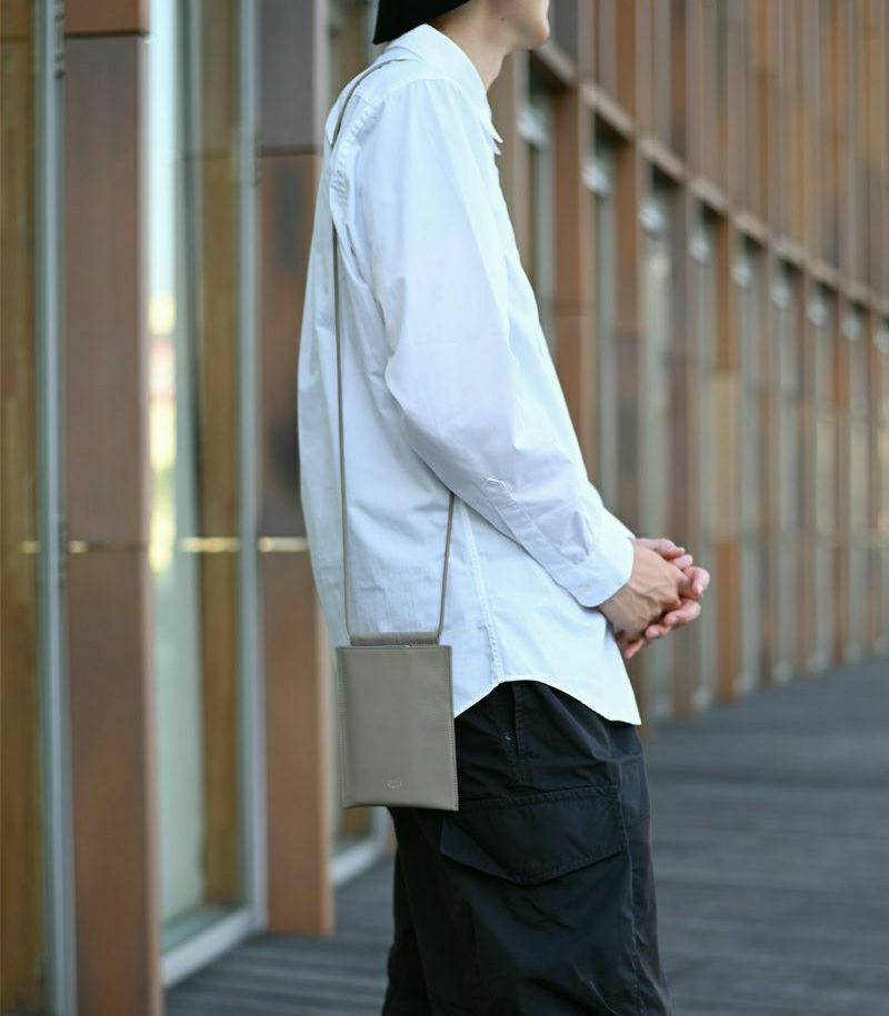 カジュアルな装いにも、きれいめな着こなしにも似合う、オールレザー製のマルチホルダー