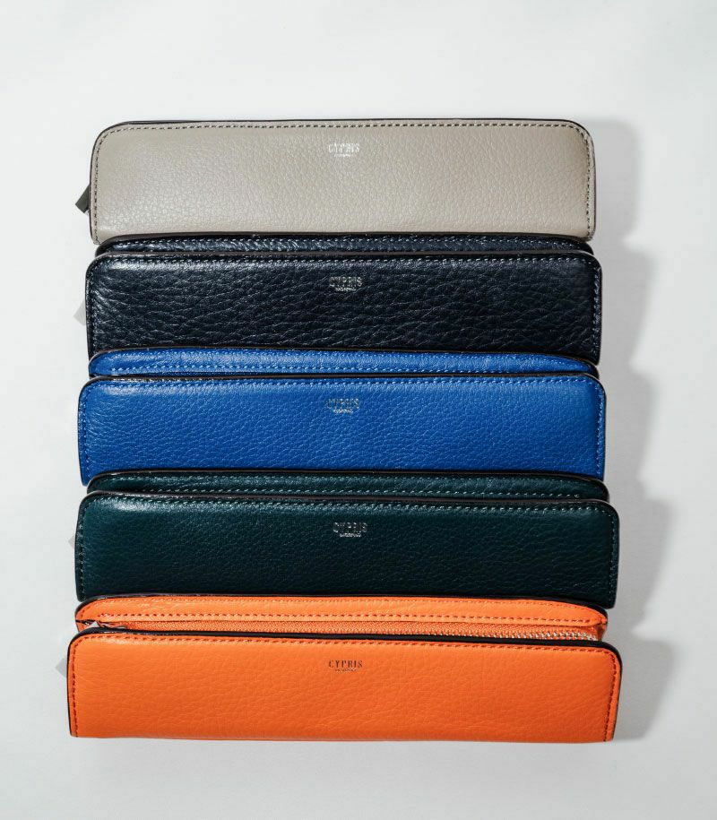 コンパクトでかさばらず、オンでもオフでも使いやすいデザイン。CYPRISのブランドロゴ入りの引き手付き。