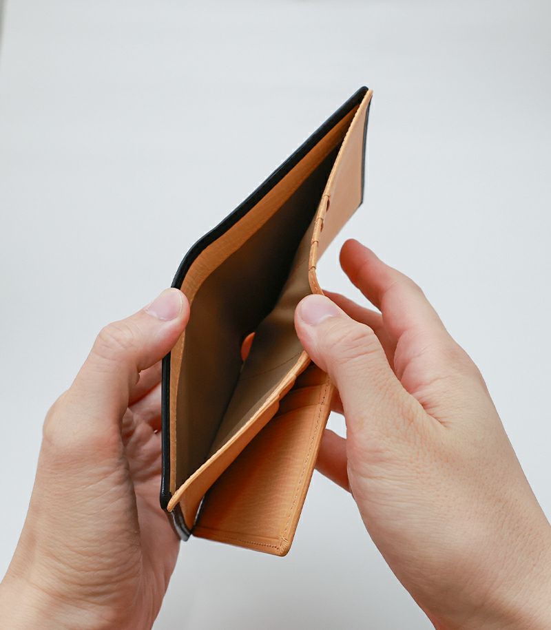 キメが細かく繊維の締まった原皮を使用し、厚みを活かしたハリ感や、アンティーク加工による独特な色の濃淡を楽しめる、キプリスオリジナルの上質な国産レザー「シラサギレザー」を使用。