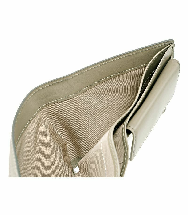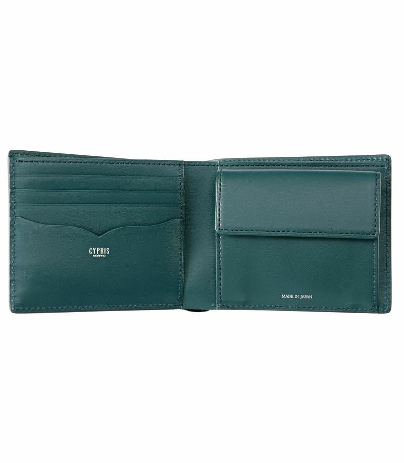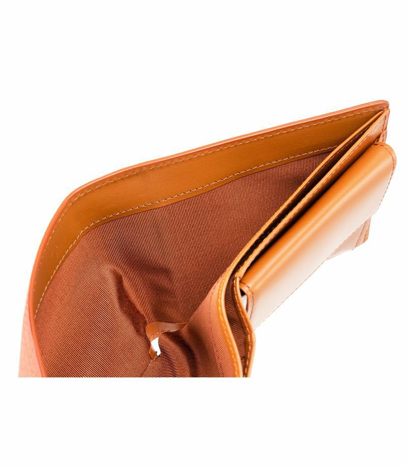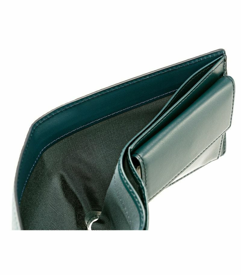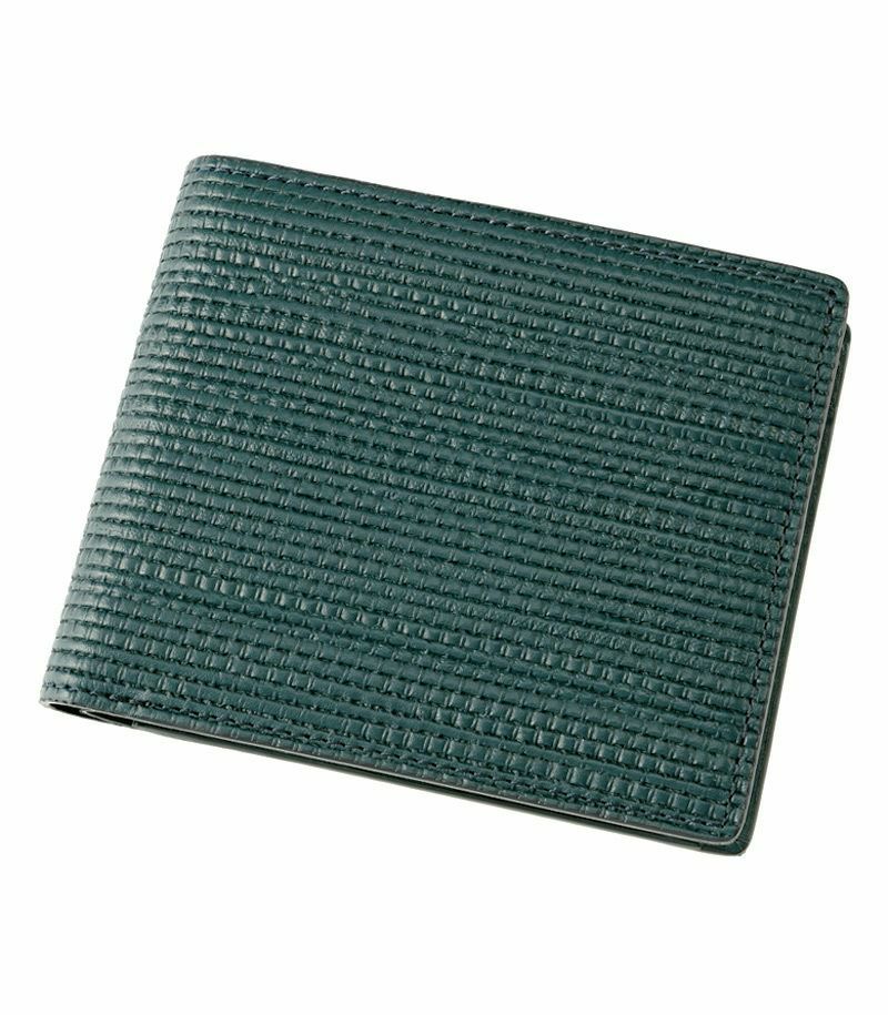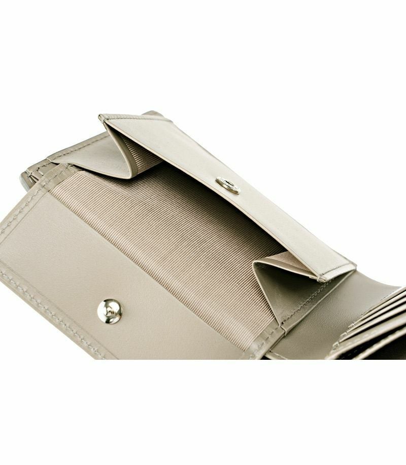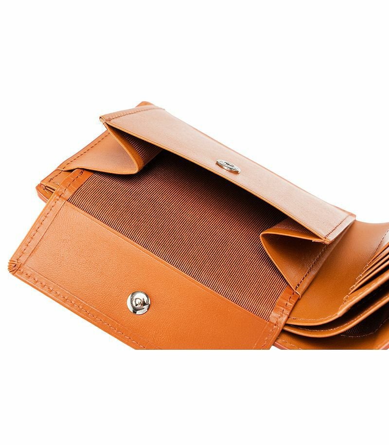 スナップボタンタイプの小銭入れが付いた二つ折りの財布です。内側には、クレジットカードや交通系ICカード類が収納可能なカード入れ×4とポケット×3が付いております。
