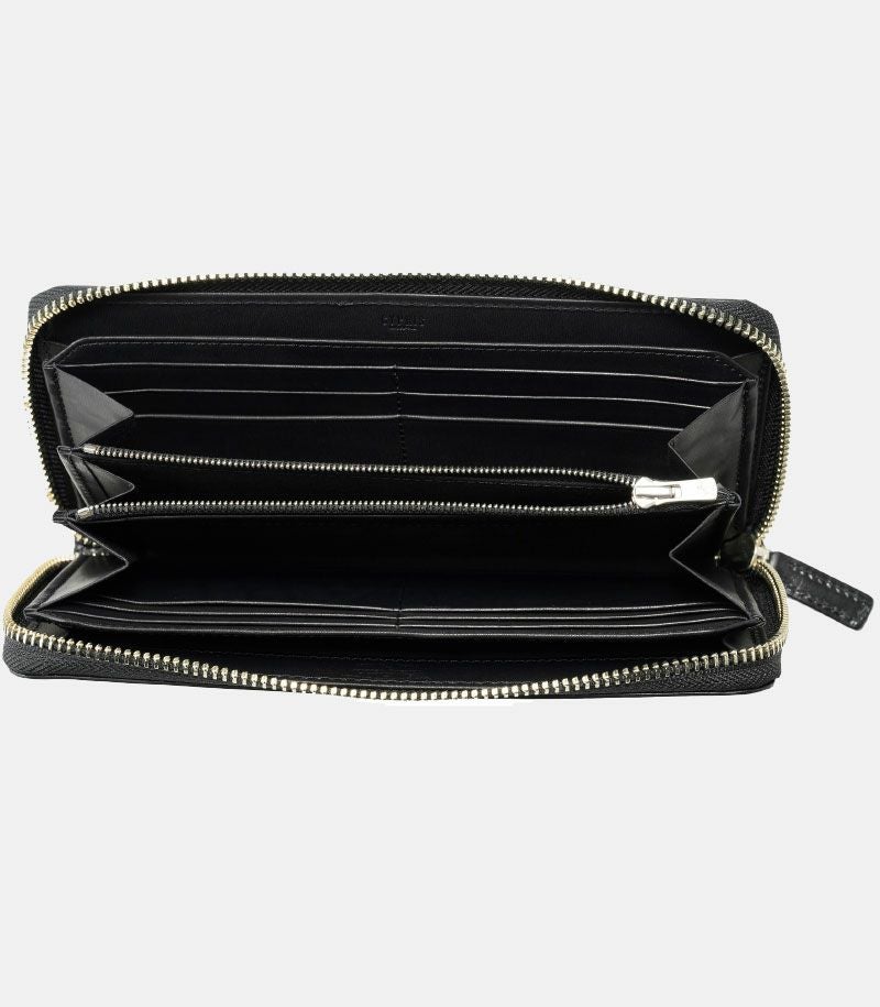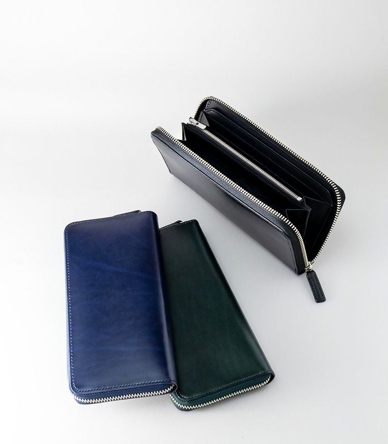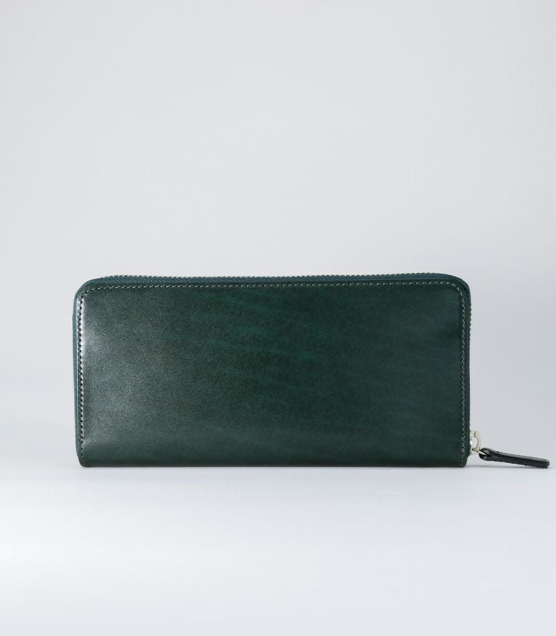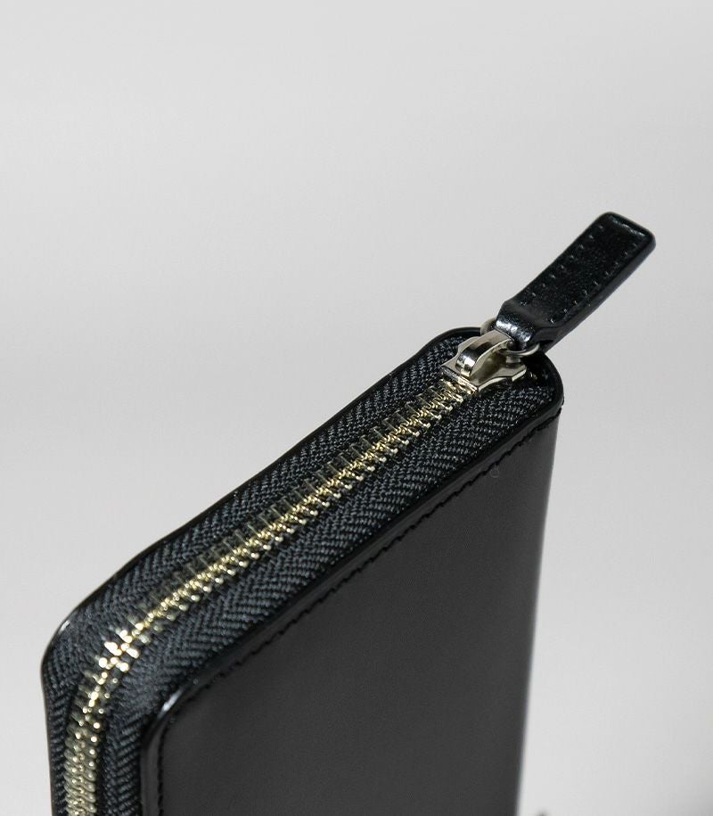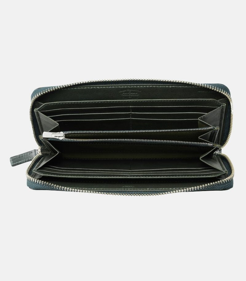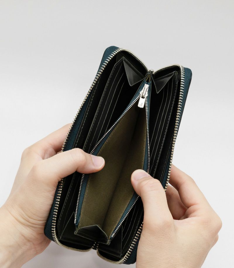 ラウンドファスナータイプのため、しっかりと留まり、中身が飛び出ることがありません。内側には、ファスナータイプの小銭入れとクレジットカードやポイントカード類が収納可能なカード入れ×12が付いています。