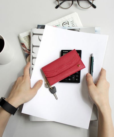 スリムな三つ折りタイプのキーケース。小さな女性の手でも収まりがよく、使い勝手の良いサイズです。